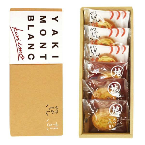 手軽に、温度帯を気にせず、栗を楽しんでもらうことができないかと考え、生まれたのが、【常温】で保存&食べられるこの「焼きモンブラン」。「焼きモンブラン」と「焼きいもモンブラン」の2種を詰め合わせセットにいたしました。