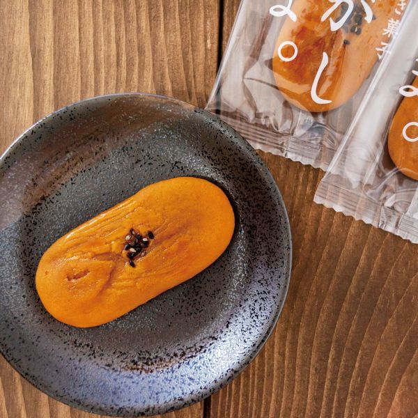 高知県の山村で昔から作られている干し芋「東山」に着目し「芋そのままの甘さを活かす焼き菓子」として出来上がったこの「ひがしやま」。バターと砂糖、白餡を少し足したのみの芋の甘さ、香り感じるスイートポテト風の商品で、着色料は一切なし。
