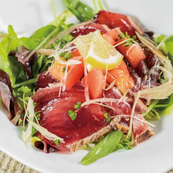 「龍馬タタキ」の美味しさを引き立てる調味料を厳選し、美しい太平洋に面した高知県産の天日塩と、高知県産のユズを贅沢に使った自家製タレをご用意しています。