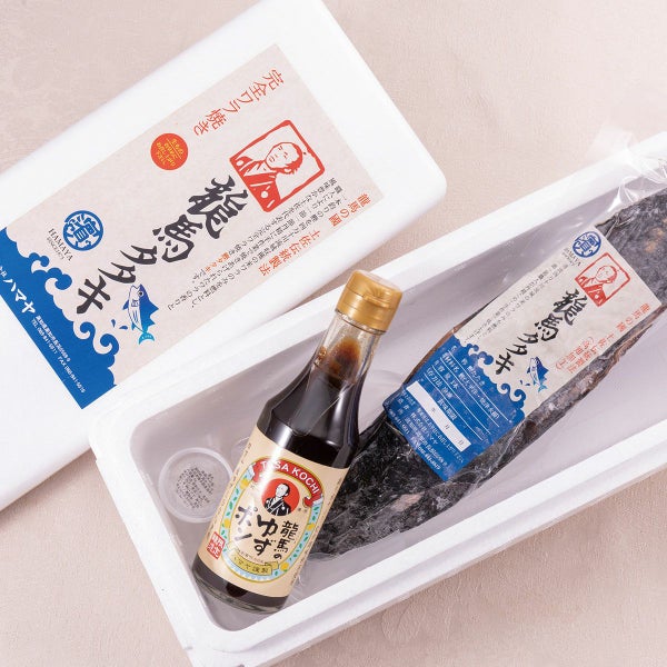 「龍馬タタキ」の美味しさを引き立てる調味料を厳選し、美しい太平洋に面した高知県産の天日塩と、高知県産のユズを贅沢に使った自家製タレをご用意しています。こちらは贈り物に最適なギフトセットにいたしました。