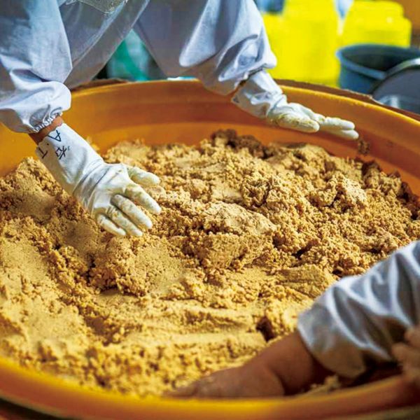 途中で空気を抜き最後の仕上げとして表面を綺麗にした後は、腐敗防止に塩を振り1年以上の歳月をかけ味噌は作り上げられていきます。