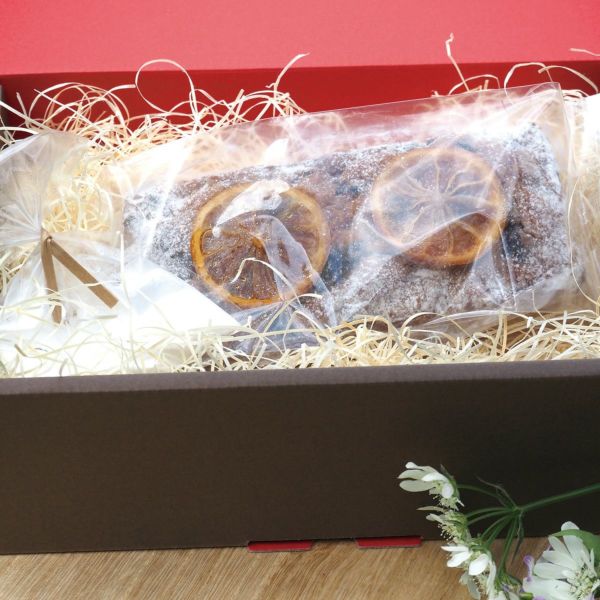 ホールサイズは嬉しい小袋の粉糖つき、食べるときに甘さのアレンジを楽しんでいただけます。またギフトBOXにお入れしてのお届けとなりますので贈り物にも最適、是非夏限定の希少なシュトーレンをお楽しみください。