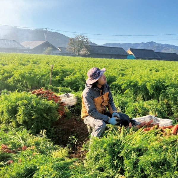 生産者の長山瞬さんは四万十町窪川地域で、こだわりのにんじんや野菜を作り続けています。この窪川という地域は盆地で自然環境は厳しく、そのおかげで寒暖差が大きく甘くてフレッシュ&ワイルドな野菜作りができる土地。その時々の気候に合わせて野菜の声を聞きながら都度最善であろう栽培方法や作業を行い、美味しい野菜を作っています。そんな長山さんが作る『四万十Ama!にんじん』は名の通り甘みが強く、野菜の旨味をダイレクトに感じることができ、また大きさも市販品よりかなり大きく食べ応えも抜群!お届けの品質も考え、あえて少しだけ薄皮を残し劣化しないよう心がけるなど、美味しいと思ってもらえる野菜作りを徹底しています。あまり市場にも流通しないこの『四万十Ama!にんじん』こちらは形などバラバラのためジュース用などにおすすめ!是非ご賞味ください。
