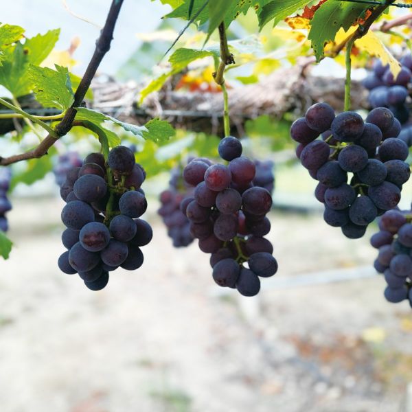 長山さんは代々様々な果樹や野菜、お米などを栽培しており、ぶどうの栽培も10年以上をかけて一から作り上げました。まず第一のこだわりとして、土づくり。堆肥や山から持ってきた落ち葉、天然鉱物から出来るサンラテールといわれる肥料など、毎年時間をかけ少しずつ土壌をしっかりと作り上げ、そして栽培自体にも手を抜きません。有機の肥料と微生物を使い、化学肥料を一切使わない方法で栽培しています。その上で味にもしっかりこだわりがあり、糖度は16度以上になるよう育て上げ、また選別を行っているとのこと。「毎日ちゃんとぶどうを見ることが大事」という根本的な教えを忠実に受け継ぎ、光合成の要の葉を枯らさないように、また実は綺麗な形になるよう剪定し、一つ一つの栽培工程を丁寧に行っています。