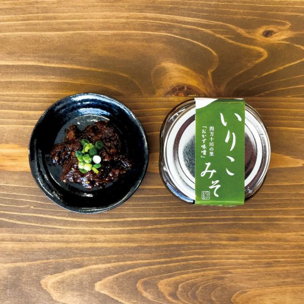 四万十生産さんのいりこみそは「いりこ」と「ごま」が織りなす香ばしい風味、味噌の味付けはやや甘辛で食欲をかきたてる一品です。