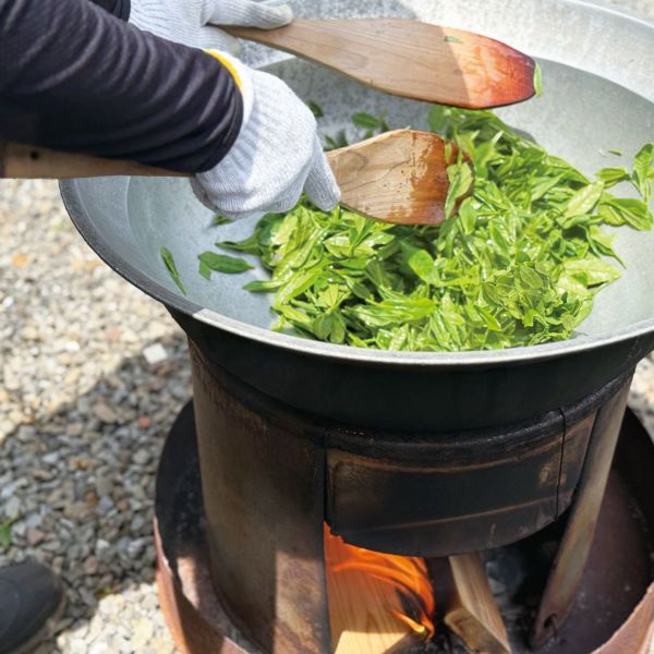 全て手作業で摘み取った新茶葉を手煎りする