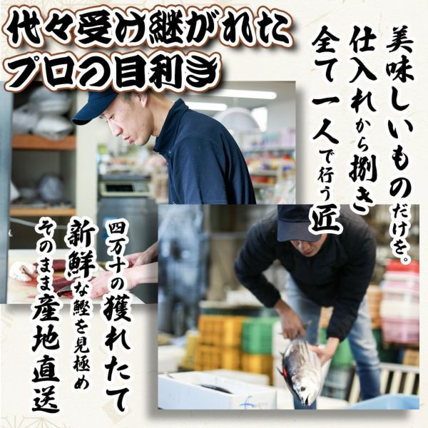 酸味の苦手なお子さんからも人気が高く、タタキを買われた親御さんから「魚が苦手な子どもでも、これなら食べられる」とお声をいただき太鼓判を押されるほど。