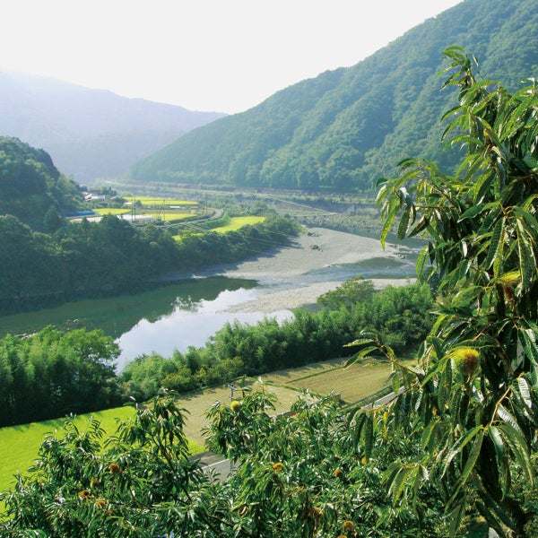 機械が入れない急斜面の茶畑が多いため、手摘みや手刈りの新茶で作られたお茶。長い日照時間とたくさんの雨で甘味を凝縮した、1粒平均25gの大きくて甘い栗。山奥で昔から作られてきた干し芋。このほかにもたくさんの素材が私たちのあしもとにはあります。
