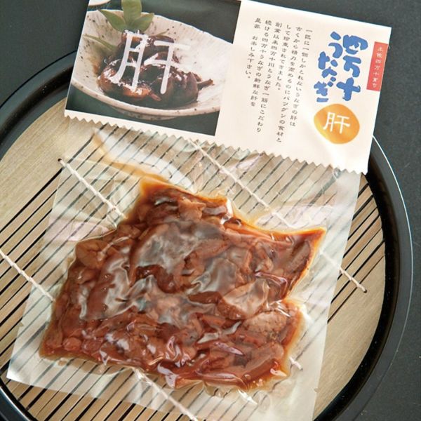 うなぎの肝は一匹に一個しか取れません。その貴重な肝をじっくりと煮詰めました。肝のほろ苦さ。噛めば噛むほど増す旨みとコク。ビールや日本酒、焼酎のほか、ワイン、ウイスキー等、どんなお酒にも相性ピッタリです。