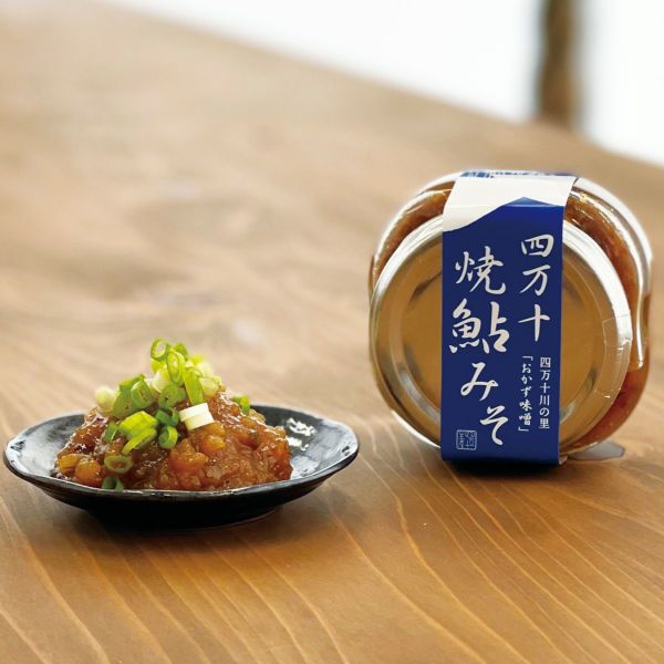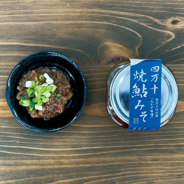四万十生産さんの焼鮎みそは、四万十川中流域で古くから伝わる「炭火無煙燻製法」にて焼き上げた焼鮎を、細かいチップ状にし、秘伝の自家製味噌と調和させたおかず味噌です。