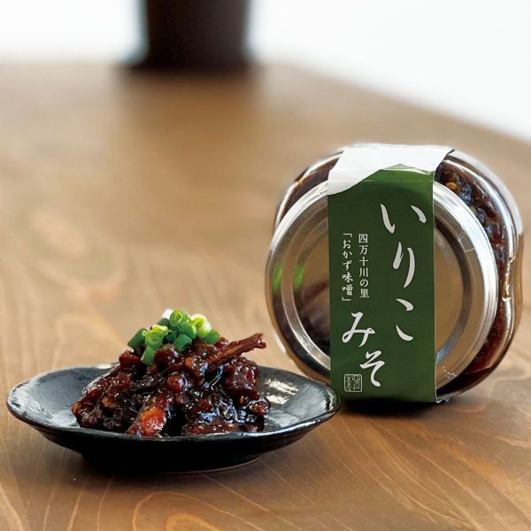 四万十生産さんのいりこみそは「いりこ」と「ごま」が織りなす香ばしい風味、味噌の味付けはやや甘辛で食欲をかきたてる一品です。