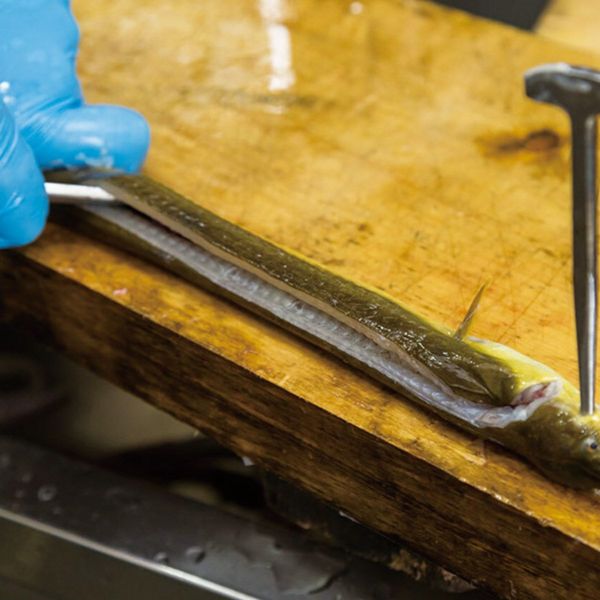 背に包丁を入れると、腕にうなぎが絡み付いてきます。天然鰻の生命力はものすごいと感じる瞬間だそう。