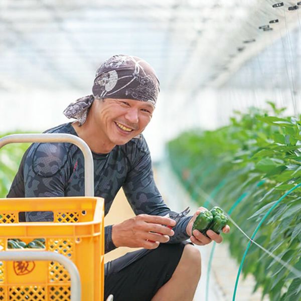 その後、県立農業担い手育成センターで農業技術や管理システムを学び、2017年よりハウス栽培での事業化を本格始動。ピーマンの生産全国3位の高知県、その群雄割拠のなか、自然環境にやさしい農業技術で夏野菜のピーマンを安定出荷しています。