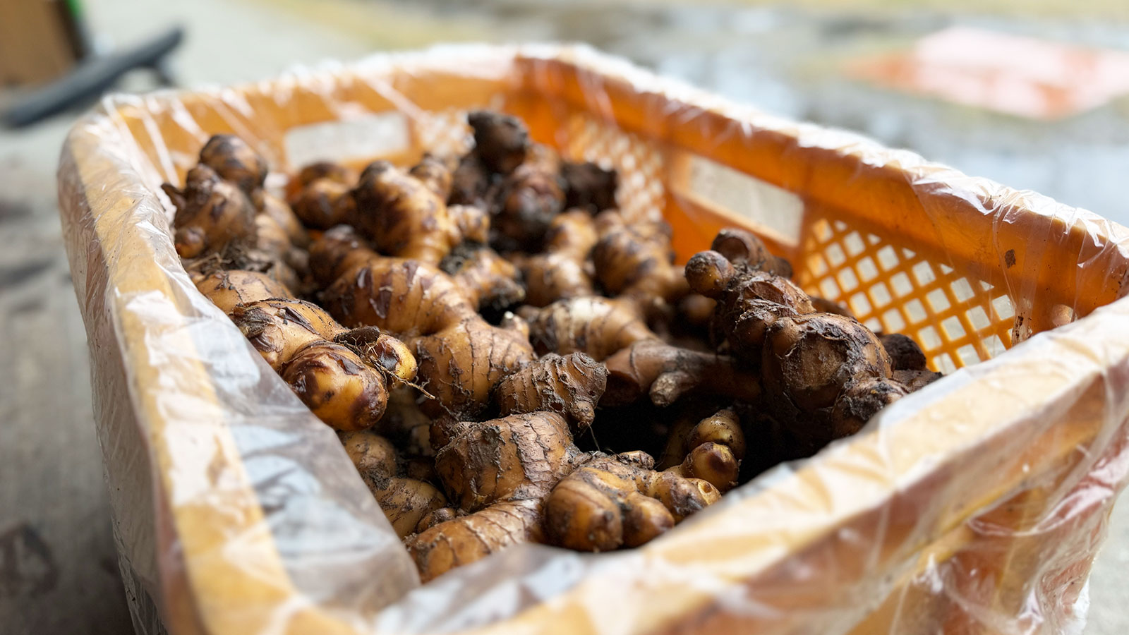 生産者の津野さんは四万十町中神ノ川で、自然と共に「生姜(土佐一)」を栽培しています。この中神ノ川という地域は四万十町の中でも特に自然豊かで、四万十川支流の「神ノ川」が流れる地。最後の清流と呼ばれる四万十川、その支流の神ノ川も当然のごとく綺麗な水が絶えず流れ、寒暖差のある気候は生姜作りに最適。また津野さんの生姜は全て自然栽培。完全な無農薬はもちろん、土の栄養は山の葉っぱのみという自然そのままの循環を大事にしており、全てその土地だけで育て上げました。そして自然洞窟での熟成。この自然洞は気温が一定で湿度が90%ほどにもなり、生姜の旨味を凝縮するのに最適な環境。全て自然を使い生姜本来の美味しさを堪能できる逸品は、少しの面積しか栽培していないため数量はごくわずか。また熟成環境を変えず土付きそのまま発送いたします。この特別で希少な自然栽培の新生姜、是非ご賞味ください。